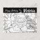 Carte de coloriage personnalisée d'anniversaire avec feuillage botanique et paresseux