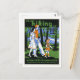 Cette carte postale est la reproduction d'un poster vintage de randonnée à Indiana State Parks, réalisée par le Département de Conservation de l'Indiana. L'affiche est dans la collection de la bibliothèque d'état d'Indiana.