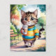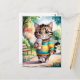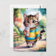 Carte Postale Promenade en chats dans le parc avec café
