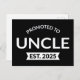 Design cool, parfait pour tout nouvel oncle. Une façon géniale d'annoncer une grossesse à votre frère ou votre beau-frère! 'Promu à oncle est 2025' une citation amusante pour chaque homme qui aime déjà sa nièce ou neveu. Donnez ceci à votre frère ou achetez cet art si vous êtes le meilleur nouvel oncle sur Terre ! Un grand cadeau pour les oncles amoureux et les frères ou les beaux-frères qui tournent les oncles.