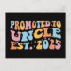 Design cool, parfait pour tout nouvel oncle. Une façon géniale d'annoncer une grossesse à votre frère ou votre beau-frère! 'Promu à oncle est 2025' une citation amusante pour chaque homme qui aime déjà sa nièce ou neveu. Donnez ceci à votre frère ou achetez cet art si vous êtes le meilleur nouvel oncle sur Terre ! Un grand cadeau pour les oncles amoureux et les frères ou les beaux-frères qui tournent les oncles.
