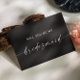 Demandez à votre future demoiselle d'honneur de façon élégante et moderne avec cette carte noire minimaliste. Doté d'un texte blanc et propre sur un arrière - plan noir gras, ce design simple et élégant donne une impression forte. Idéal pour une boîte de proposition ou une surprise dans le courrier. Le message est entièrement modifiable à l'envers.