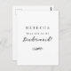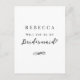 Cette carte postale Proposition de fête nuptiale offre une façon simple et élégante de demander : "Serez-vous ma demoiselle d'honneur ?" Un design de typographie minimaliste entièrement personnalisable. Couleurs simples en noir et blanc