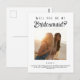 Cette carte postale de la Proposition d'aide-mémoire offre une façon mémorable et unique de demander : "Serez-vous ma servante d'accueil?" Avec son design chic noir et blanc minimaliste et la tête de masque "The Mariage Post", il dispose d'une photo élégante que vous pouvez garder ou échanger pour une image personnelle. Customisez-le avec le nom de votre ami et un message sincère pour rendre votre proposition vraiment spéciale. Le toucher parfait pour rendre votre demande inoubliable.