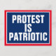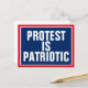 Protest is patriotic and a basic first amendment right. Design description: As shown, white text on a blue rectangle. Red background. Text: Protest is patriotic.