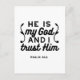Minimalist yet powerful Bible verse typography based on Psalm 91:2, declaring “He is my God and I trust Him.” Perfect for Christian apparel, church merch, faith stickers, and home wall art.