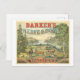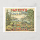 Cette carte postale est une reproduction d'une lithographie ancienne montrant une publicité pour le Liniment pour les nerfs et les os de Barker pour les chevaux.