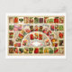 Cette carte postale est une reproduction d'une publicité ancienne pour des semences de fruits, de légumes et de fleurs.