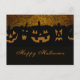 Spooky jack o' lantern pumpkins over an elegant orange and black flourish background. Personalize this custom festive postcard and make it your own.