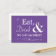 Invitations amis et la famille pour vous aider à célébrer votre mariage récent avec ce blanc rétro funky sur mauve manger, boire et être marié!