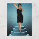 KRW Putting on the Ritz Deco Flapper Design. Une belle brune en robe fringale en satin noir, accessoirisée de plumes et perles sur fond bleu classique art déco. Parfait pour le fan des années 20.