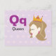 Carte Postale Q est pour Queen - Alphabet Flash Card