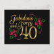 Carte de postale d'anniversaire pour femme or et noir avec des roses rouges Quarante ans et fabuleuse. Personnalisez le message avec le nom du destinataire et tout ce que vous souhaitez écrire.