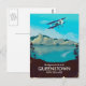 Queenstown Nouvelle-Zélande style vintage affiche d'un avion propulseur volant au-dessus d'un lac profond dans la nation.