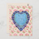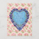 "Vous devez me permettre de vous dire à quel point je vous admire et je vous aime avec ardeur", célèbre citation de M. Darcy quand il propose de manquer Elizabeth Bennet, de Pride et Préjugés de Jane Austen. Voici une carte vintage de Saint Valentin avec un coeur bleu et violet fleuri sur un arrière - plan rose à fleurs.
