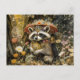 Carte Postale Raccoon avec un champignon à l'ail volante en Imag