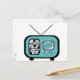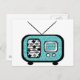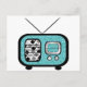 La radio rappelle les années 50 mais avec des motifs sauvages. Turquoise et blanche et noire. Antenne en haut.