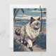 Carte Postale Ragdoll-Cat sur une plage tropicale au coucher du