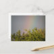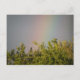 Cette carte postale présente une belle photo paysagère d'un arc-en-ciel au-dessus de quelques arbres. La photo a été prise immédiatement après une tempête de pluie pour capturer les couleurs vives de l'arc-en-ciel. Le ciel environnant est gris et couvert de nuages.