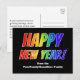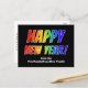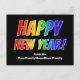 Le recto de cette carte postale affiche le message "HEUREUX NOUVEL AN !" dans le spectre coloré arc-en-ciel inspiré texte dégradé. L'avant porte également un nom personnalisé. Le dos contient un message personnalisable. Une carte postale comme celle-ci pourrait être utilisée pour envoyer des voeux de Nouvel An à des amis et à la famille.