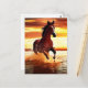 Carte postale dans le portrait d'un beau cheval sauvage galopant à travers le surf, contre un ciel couché de soleil