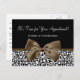 Faites une déclaration de mode avec ces rendez-vous de salon empreinte de léopard noir et blanc tendance carte postale avec un ruban brun carafe ceint attaché dans un arc chic. Personnalisez ce rappel de rendez-vous élégant en ajoutant votre nom d'entreprise et vos coordonnées aux zones de modèle personnalisables. Il fait partie de la collection de mode d'automne Poster de animal. Image imprimée plate, pas le ruban réel.