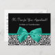 Faites une déclaration de mode avec ces rendez-vous de salon empreinte de léopard noir et blanc tendance carte postale avec un ruban vert émeraude ceint dans un arc chic. Personnalisez ce rappel de rendez-vous élégant en ajoutant votre nom d'entreprise et vos coordonnées aux zones de modèle personnalisables. Il fait partie de la collection de mode d'automne Poster de animal. Image imprimée plate, pas le ruban réel.