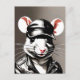 Voici un rat vêtu d'un équipement de motard. Il a son chapeau et sa veste, et est prêt à rouler... ou peut-être simplement traîner dans un bar quelque part.