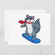 Carte Postale Raton laveur en snowboardeur avec planche à neige