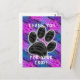 Que vous soyez un cabinet vétérinaire, un toiletteur ou un promeneur de chiens, faites la promotion de votre entreprise avec une carte postale peu coûteuse. Cette carte postale d'appréciation de la clientèle présente une grande empreinte de patte noire sur un fond rayé en diagonale de bleu et de violet. "Merci de votre confiance" peut être personnalisé rapidement et facilement si vous le souhaitez.