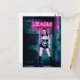 " Deadly Rebel" Ce design pointu, inspiré du cyber-punk, présente une féroce figure féminine debout en toute confiance dans un contexte urbain grincheux. Le signe "MORT" du néon brille au-dessus d'elle, correspondant à l'intensité de son mohawk rouge et de sa robe aux motifs crâniens. Les dalles et tuyaux industriels tressés de graffitis sombres créent une ambiance crue et dystopique qui mêle la mode punk à une esthétique futuriste noir.