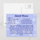 Cette jolie carte postale a un arrière - plan bleu avec des flocons de neige blancs partout. Une recette de pacanes épicés grace le devant. Parfait pour les amateurs de cuisine ou de cuisson !