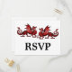 Parfait pour un mariage sophistiqué de jeu de table d'imaginaire à thème est cette Elegant Dragons Wedding RSVP Postcard avec une paire de dragons rouges vibramment colorée. Facile à customiser, il suffit d'ajouter les détails de votre mariage dans les champs de texte fournis. Cliquez sur "Customiser" pour trouver d'autres options de personnalisation.
