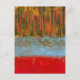 Un paysage abstrait représentant une forêt avec de nombreux arbres et un plan d'eau, peut-être une crique, une rivière ou un lac, rempli de rayures dans les vagues avec le rouge écarlate au premier plan. Une collection de couleurs chaudes dans cette scène naturelle d'automne pour les amoureux de l'extérieur.