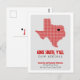 Faites-leur savoir où vous allez avec ce faire-part chic en mouvement. Comprend l'état du Texas dans un motif de grille avec un coeur que vous pouvez déplacer pour montrer où est votre nouvelle maison. Backside présente votre message encourageant les gens à venir vous voir. Vient en orange brûlé, marron, rouge, drapeau d'état bleu, vert, violet, orange, noir et jaune - la plupart basé sur les couleurs de l'école d'état. Produits correspondants disponibles.