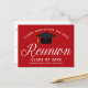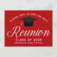 Une carte postale d'invitation à la réunion de classe personnalisée en rouge et blanc pour un lycée, un collège ou une université. Customisez avec votre nom d'école et classe de fin d'études sous l'élégante calligraphie pour les grandes cartes postales invitations de célébration des anciens élèves personnalisées.