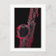 Image dramatique d'un saxophone en noir et blanc avec des reflets rouges, sur un arrière - plan noir. Idéal pour les amateurs de sax !