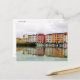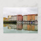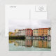 Carte postale de bâtiments colorés et de leurs reflets avec des bateaux le long d'un canal à Livourne, Italie. Photographie numérique par Sue Melvin