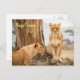Photo de deux beaux Lions près d'un tronc d'arbre, affichée sur une carte postale.