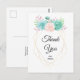 Carte Postale Remerciement aquarelle rose et vert moderne avec d