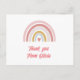 carte postale remerciement arc-en-ciel pastel rose pour l'anniversaire des filles.