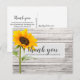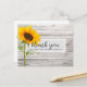 Cette carte de remerciement pour une fête d'anniversaire présente une texture de bois avec un tournesol unique et une typographie script et moderne sont utilisées. Le verso de la carte peut être personnalisé ou le texte peut être supprimé pour un message manuscrit.