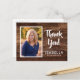 Cette carte de remerciement de diplôme présente un fond en bois rustique tendance. Le recto offre un cadre photo vertical et le nom du diplômé. Le verso offre un texte personnalisé pour votre adresse de retour.