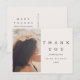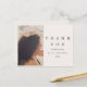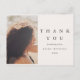 Cette carte de remerciement de fiançailles moderne et minimaliste noire et taupe présente une écriture élégante et une photo avec un message de remerciement éditable et l'adresse de retour au verso.