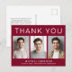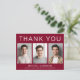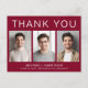 Carte de remerciement de fin d'études rouge bordeaux moderne comportant 3 photos du diplômé et « Merci », le nom du diplômé, l'école et l'année de promotion en typographie blanche simple. Personnalisez votre message de remerciement au dos et ajoutez votre nom dans un script ressemblant à une signature.