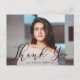 Cartes de remerciement de fin d'études élégantes et stylées comportant une police de caractères calligraphiée moderne noire superposée sur la photo préférée de l'étudiant diplômé. Personnalisez les cartes de remerciement de fin d'études modernes en ajoutant le nom de l'étudiant diplômé, l'adresse de retour et votre message personnalisé.
