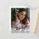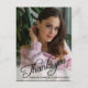 Carte de remerciement de fin d'études en calligraphie élégante avec photo.