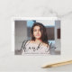 Simple, élégante carte de remerciement de fin d'études avec la photo horizontale du diplômé et "Merci" dans un superposé de script noir élégant. Personnalisez le recto de la carte de remerciement de fin d'études en ajoutant le nom du diplômé et l'année de fin d'études. La carte de remerciement est réversible pour afficher votre adresse de retour et un message facultatif. La carte de remerciement photo est parfaite pour les diplômés du lycée et de l'université.