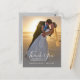 Cette élégante carte de remerciement de mariage propose un cadre photo vertical qui remplit le devant de la carte. Il est accentué par un texte manuscrit élégant et un dégradé gris clair sur le bas. Personnalisez cette carte avec votre photo de mariage préférée, un court message de remerciement, vos noms et la date du mariage.