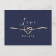 Élégante, minimale, simple carte de remerciement de mariage bleu marine avec cœur de corde dorée et texte personnalisé au verso.